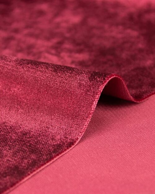 • Velours tissé brillant ignifuge permanent – ​​Couleur rouge foncé, largeur 150 cm, 100 % polyester